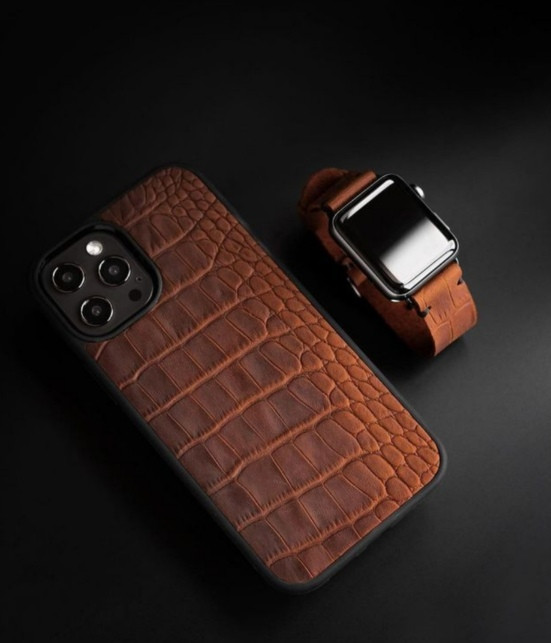 ست بند ساعت و گارد موبایل چرم طبیعی